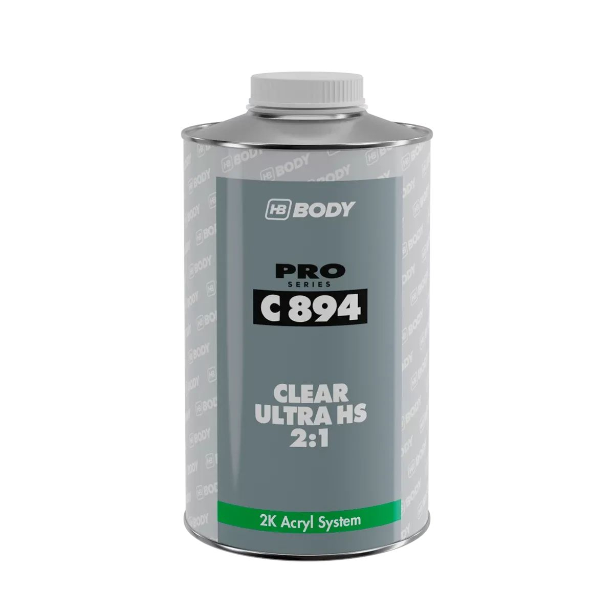 HB BODY PRO C894 ULTRA HS – надтовстий безбарвний лак із чудовим вирівнюванням, швидким затвердінням та чудовим збереженням глянцю. Цей продукт підходить для всіх видів високоякісного фарбування – повного та часткового. C894 Clear Coat є більш екологічно чистим продуктом через високий вміст твердих частинок. Має чудове покриття, всього півтора шари, набагато більш економічне рішення. Змішати у співвідношенні 2:1 із затверджувачем H735 FAST/H734 NORMAL/H733 SLOW HARDENER. Час затвердіння становить 25-40 хвилин при 60°C (140°F) залежно від затверджувача.