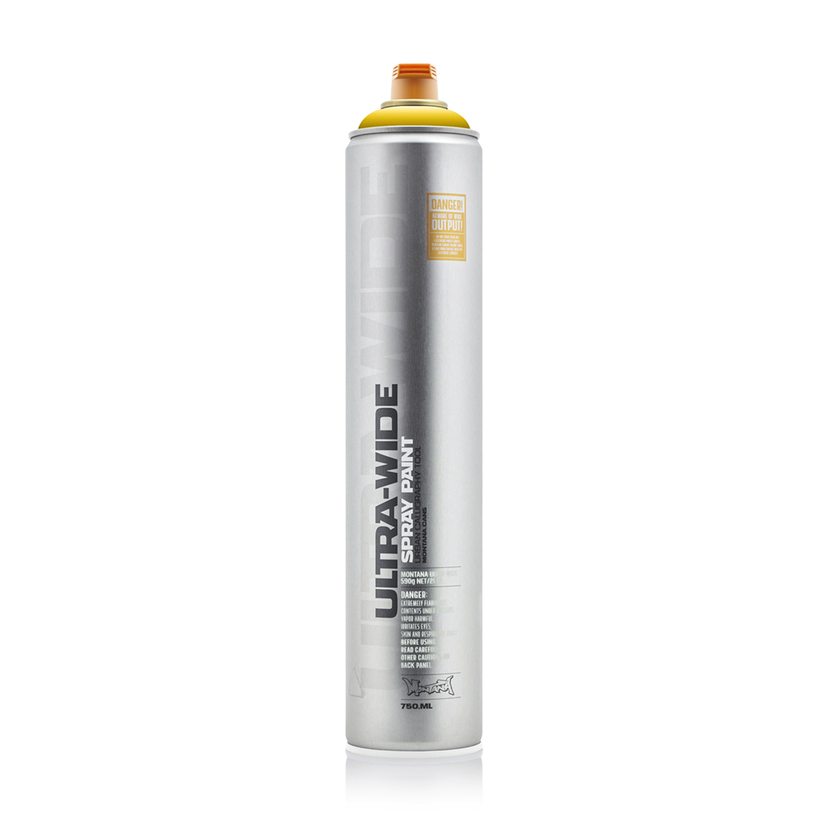 Найновішим представником сімейства фарб Montana є 750 мл УЛЬТРА-ШИРОКА банка. Ідеальний інструмент для сучасної міської каліграфії та роботи з надширокими лініями, банка ULTRA-WIDE доступна в хромованому, чорному, червоному, синьому, королівсько-фіолетовому та підгузкових кольорах із варіацією ширини розпилення від 15 см при швидкому нанесенні з близької відстані до приблизно 60 см, якщо наносити повільніше на більшій відстані від бажаної поверхні.