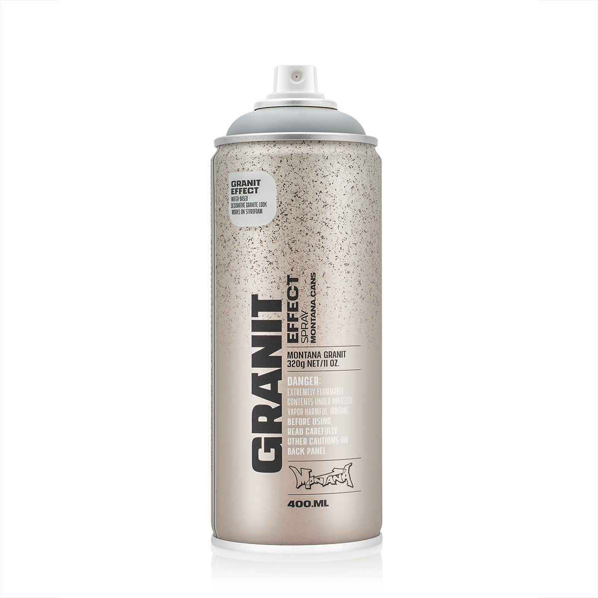 Фарба зі спеціальним ефектом на водній основі з дрібними частинками пластику для оманливо реалістичного ефекту граніту. Не рекомендується для зовнішнього використання! Водостійкий лише після нанесення кількох шарів ЛАКУ Montana та правильного покриття поверхні (ґрунтовка). Застосовується на різних поверхнях, таких як папір, картон, ґрунтоване полотно, дерево, скло, метал, кераміка, порцеляна, камінь, полістирол та інші акрилові матеріали, які можна фарбувати. Ефект Montana GRANIT має дуже високу покриваність. Для досягнення найкращих результатів рекомендується ґрунтувати поверхню, якщо ви використовуєте світлі відтінки з ефектом граніту, особливо під час фарбування на темних поверхнях. Рекомендуємо використовувати спрей Montana PRIMER або Montana TEXTURE. Останнє ще більше покращить вигляд граніту. Після повного висихання можна наносити верхнє покриття. Можна поєднувати з маркерами Montana GOLD, Montana ACRYLIC і стандартними акриловими фарбами. Спрей GRANIT EFFECT добре працює і як структурний спрей. Злегка покрийте сухі ділянки, щоб отримати бажаний вигляд граніту. Колір, показаний зверху або пончик. Рекомендується покрити ЛАКОМ Montana. Переконайтеся, що ефект граніту повністю висох (36-48 год) перед запечатуванням лаком Montana. В наявності кольори: світло-сірий, сірий, коричневий і чорний. Зверніть увагу: GRANIT Black містить суміш зелених і чорних частинок пластику, щоб відтворити зовнішній вигляд справжнього граніту. За бажанням Montana GOLD Shock Black можна наносити як верхнє покриття після повного висихання.