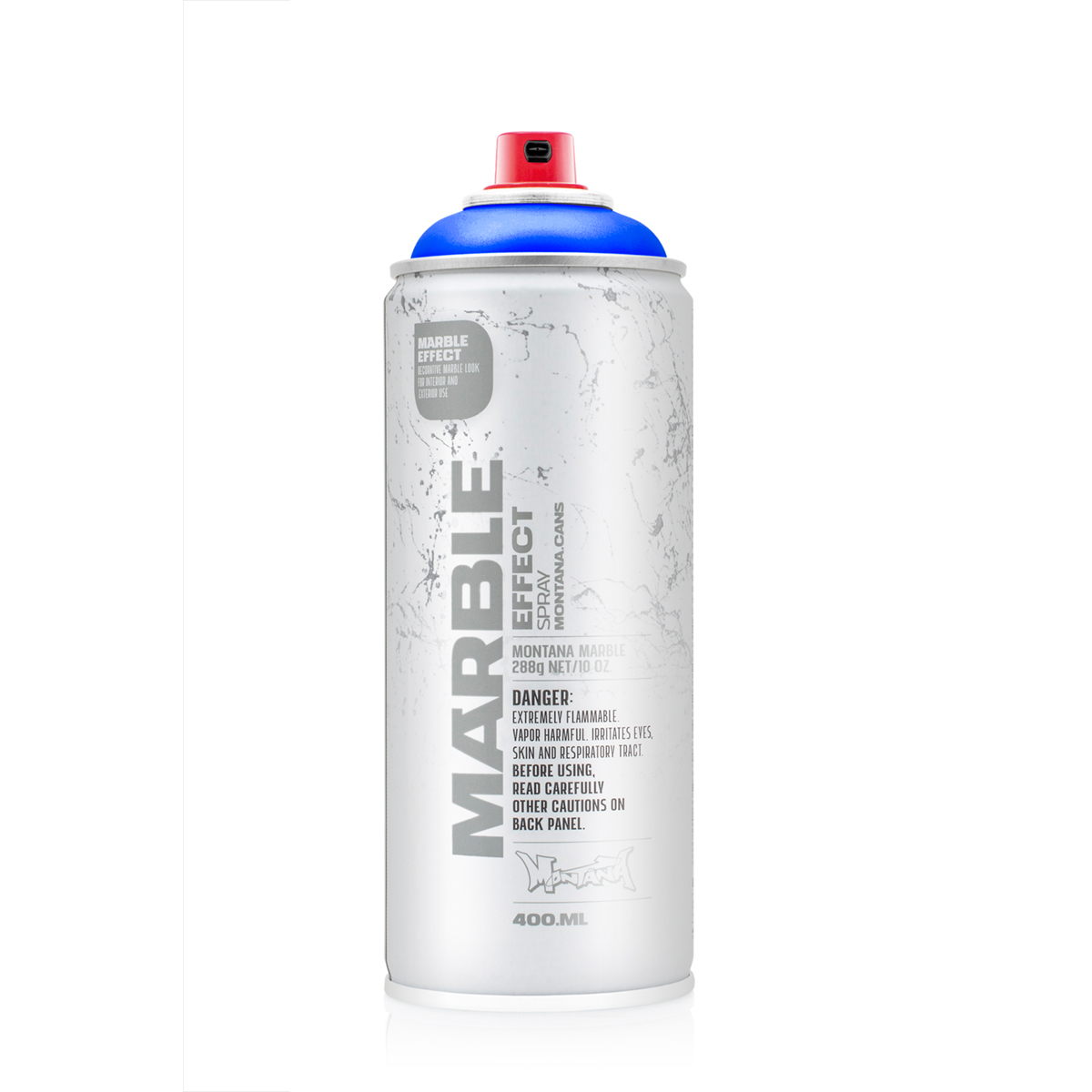 Спрей-фарба з високим рівнем покриття для оманливо реалістичного мармурового ефекту. Можна використовувати на різних поверхнях, таких як папір, картон, ґрунтоване полотно, дерево, скло, метал, кераміка, порцеляна, камінь, акрил та інші матеріали, які можна фарбувати. Ефект мармуру створюється дуже тонкими кольоровими пасмами фарби на поверхні предмета. Область, яку потрібно обприскати, не покривається повністю і залишатиметься частково видимою, тому перед використанням потрібно зробити фон бажаного кольору. Після повного висихання можна наносити багато звичайних типів лаку. MARBLE Effect можна поєднувати з маркерами Montana GOLD, Montana ACRYLIC і звичайними акриловими фарбами. Банка з мармуровим ефектом стандартно постачається з каліграфічним кепом, який можна налаштувати для створення вертикальних, горизонтальних ліній розпилення або їх варіацій.