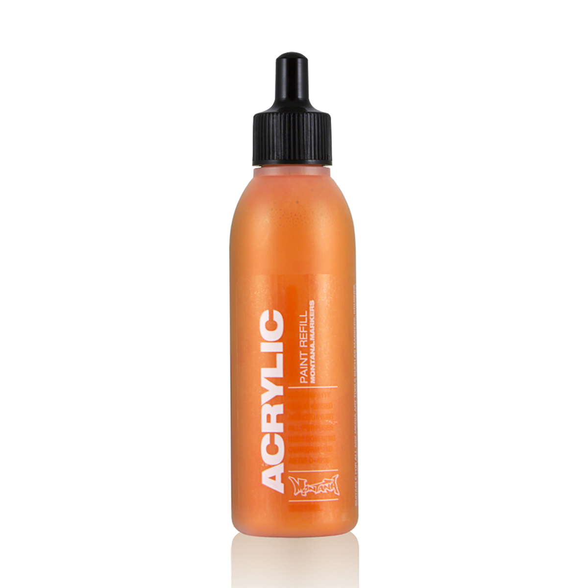 Заправки Montana ACRYLIC PAINT доповнюють лінійку маркерів Montana ACRYLIC, пропонуючи всі 36 матових кольорів і глянцевий лак у серії у вигляді заправок об’ємом 25 мл. Тепер включає 5 флуоресцентних відтінків кольорів: Блискучо-Жовта, Потужно-помаранчево, Вогняно-червона, Блискучо-Рожева і Кислотно-Зелена. Montana ACRYLIC COLOURS ідеально підходить не тільки для заправки ваших АКРИЛОВИХ маркерів Montana, але й пропонує широкий спектр можливих технік нанесення, таких як аерограф, змішана техніка, нанесення пензлем і, звичайно, може поєднуватися з відповідним кольором із асортименту фарб Montana GOLD. Можна наносити майже на всі поверхні, такі як полотно, дерево, скло, стіни та метал. Пляшки прозорі для легкої оцінки вмісту, що залишився. Ідеально підходить для аерографа! Використовуйте в поєднанні з порожніми маркерами Montana ACRYLIC Extra Fine (0,7 мм), FINE (2 мм), шириною 15 мм, 30 мм і 50 мм. Не містить розчинників. Розводиться водою. Висока покривна здатність і швидке висихання.