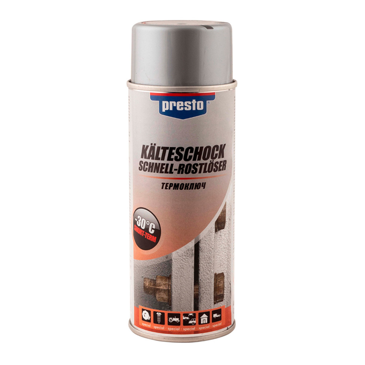 До складу входить мінеральне мастило, яке дозволяє швидко відкручувати заіржавілі гвинти, гайки, болти та інші з'єднання. Іржа руйнується шляхом різкого і короткого зниження температури на з'єднанні до -30 º С. Термоключ Presto не шкодить металу, не містить силікон і жир.