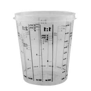 Застосовується змішування всіх видів емалей, включаючи емалі на водній основі. Прозорість контейнера гарантує точність змішування. Виготовлений із матеріалу, безпечного для навколишнього середовища. Контейнер може комплектуватись кришкою.