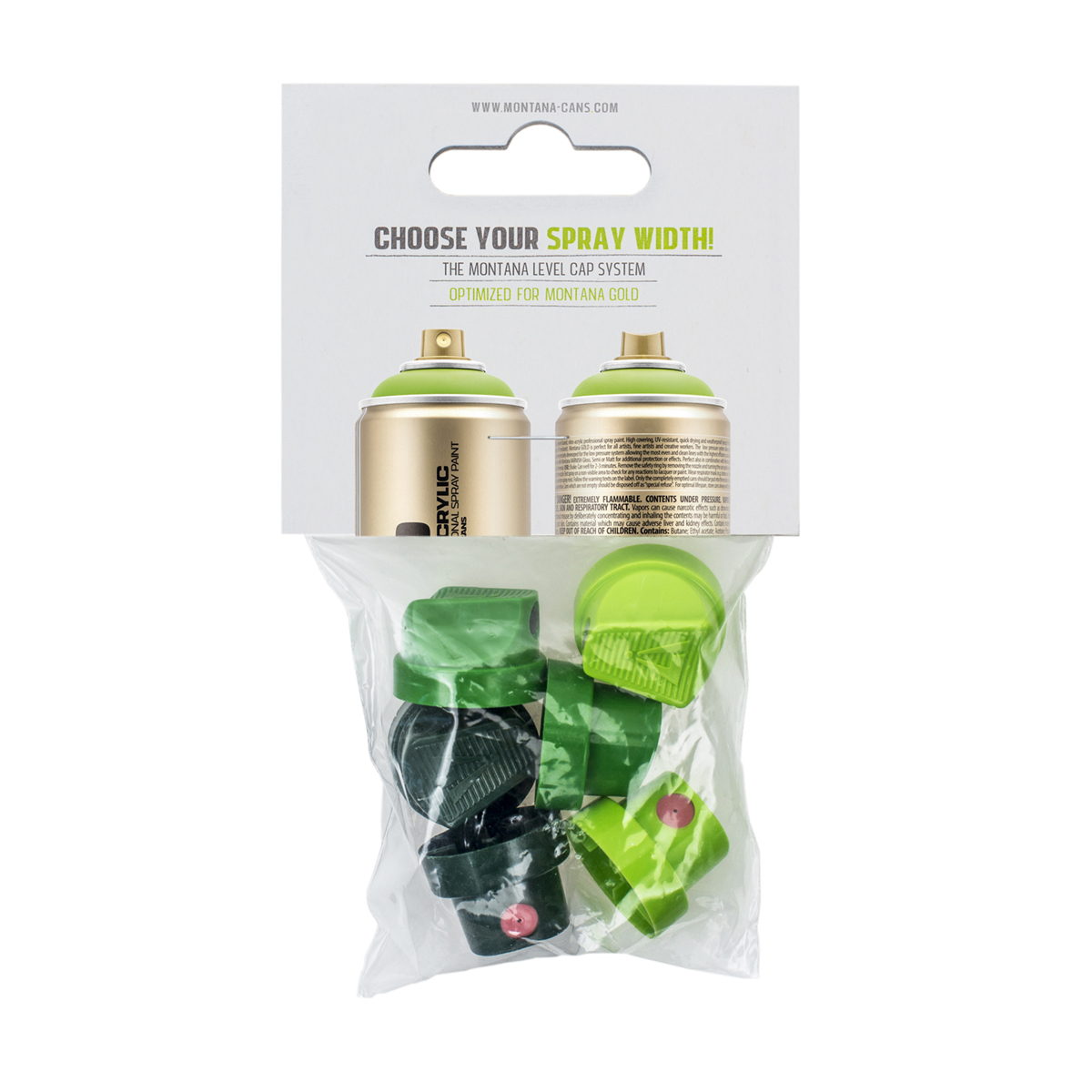 Відрізнити Skinny від Fat кепи легко, оскільки Skiny кепи рівня 1-3 знаходяться в тілі кришки у формі банана. Fat кепи Level 4-6 знаходяться в тілі округлої форми. Обидві форми оптимізовані для продуктивності розпилення та комфорту під час використання. Кожен кеп підходить для банок з внутрішнім клапаном, що дозволяє використовувати їх також з балончиками Montana BLACK і Montana WHITE.