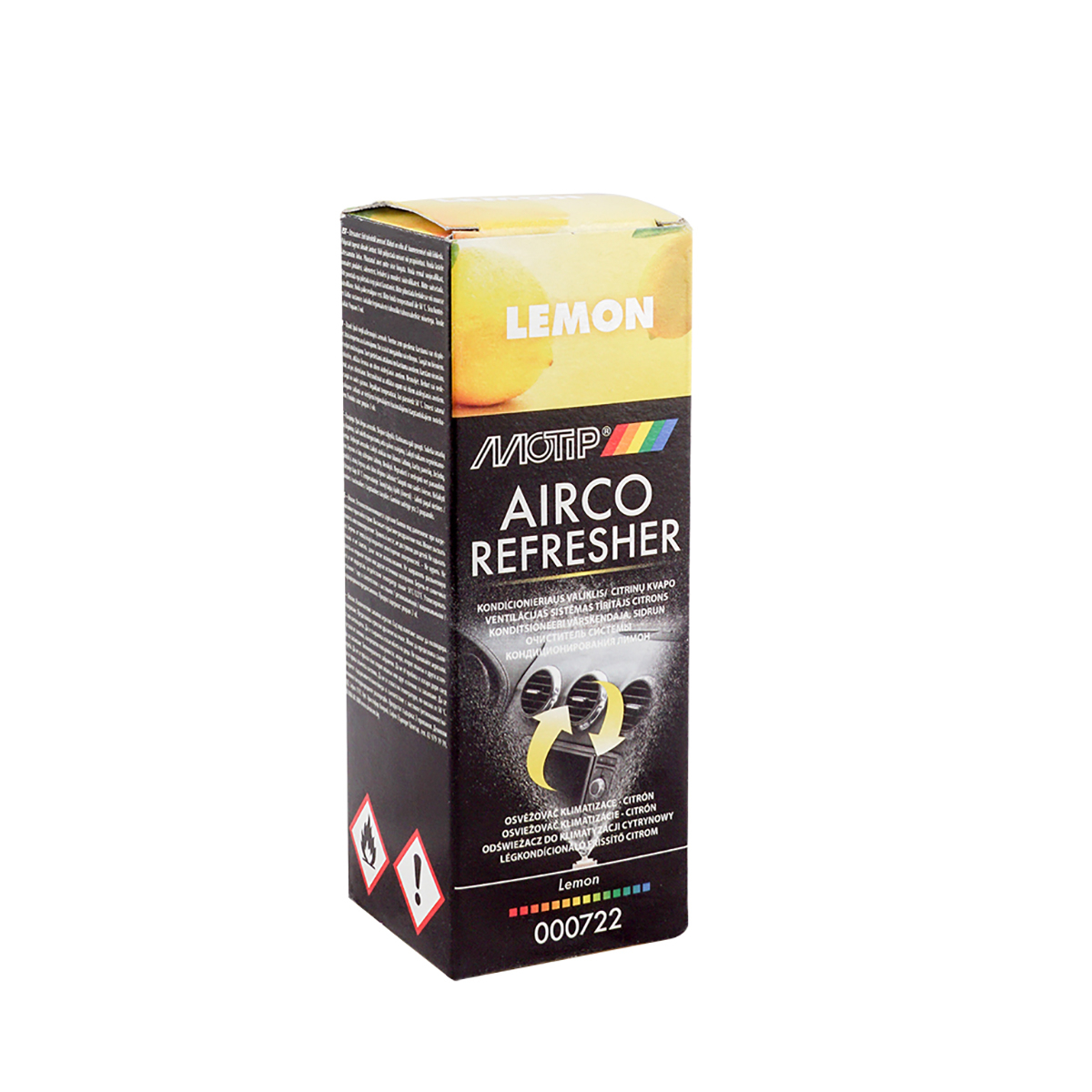 Motip Airco Refresher очищає повітря в кондиціонері автомобіля; дезінфікує та вбиває бактерії, мікроорганізми. Поглинає неприємний запах і залишає свіжий аромат. Безпечний склад не викликає алергічних реакцій.