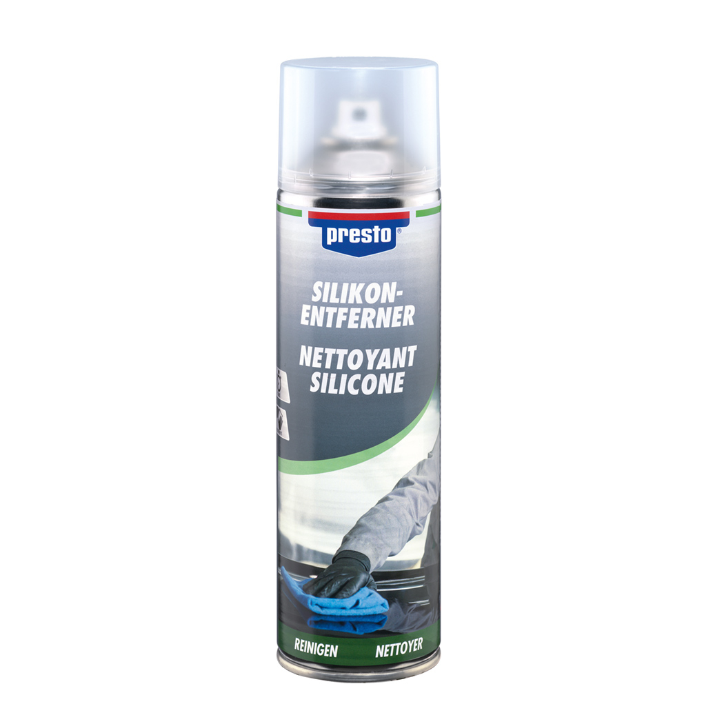 Presto Silicone Remover безпечний для лакофарбового покриття, пластмас, гуми та скла.